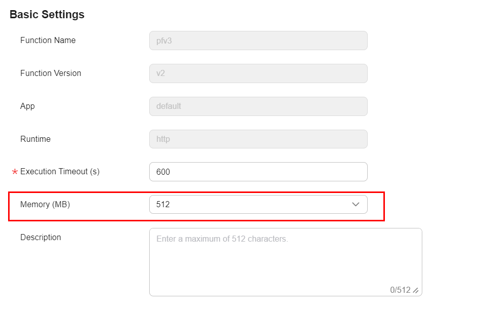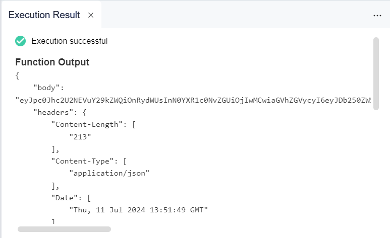 Important: If the function execution shows the error “runtime process is exited”, check the memory allocated to the function in “Configuration” and “Memory(MB)”, allocating more memory.