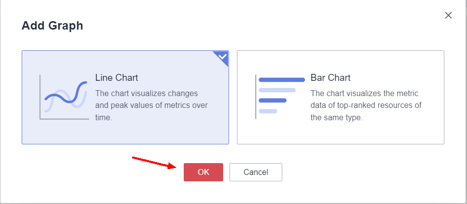 Under Metric Display, select One graph for a single metric to add a single metric to the graph, or select One graph for multiple metrics to add multiple metrics to the graph.