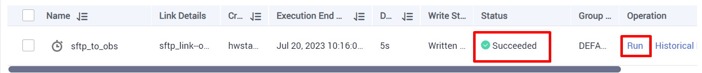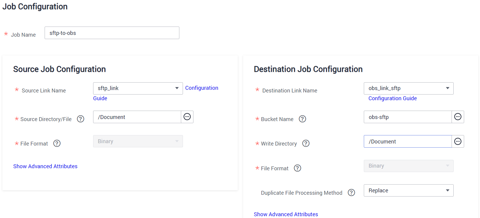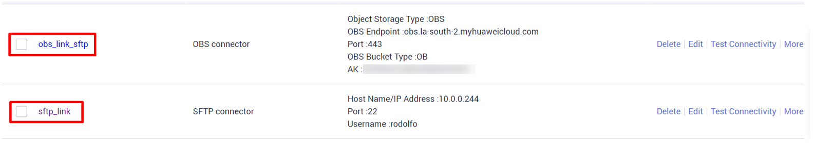 • Select the source and the destination CDM links. In this case, the source is “sftp_link” and the destination is “obs_link_sftp”;