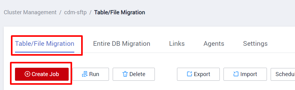 • In Job Management, select Table/File Migration, since only some directories inside SFTP will be migrated (Image 13);