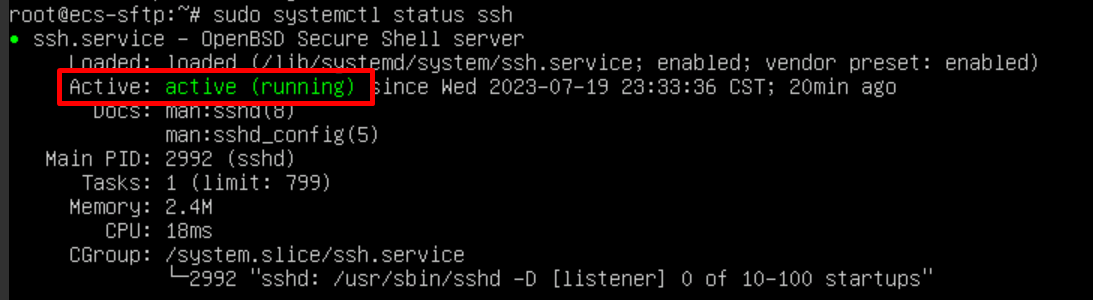 • Check the ssh status of ssh using: sudo systemctl status ssh. Notice if the status shows active (running). SSH should be active, as image 2 shows.