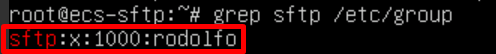 • To verify if the user was added successfully, use the following command: grep sftp /etc/group (as shown in image 4)