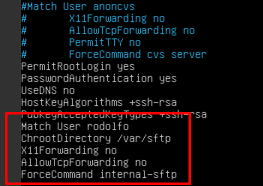 • Add the user to “sftp” group: sudo usermod -a -G sftp rodolfo