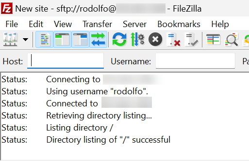 • If the connection is successful, the user’s directory will be accessible in FileZilla and it’s possible to upload and download files and directories.